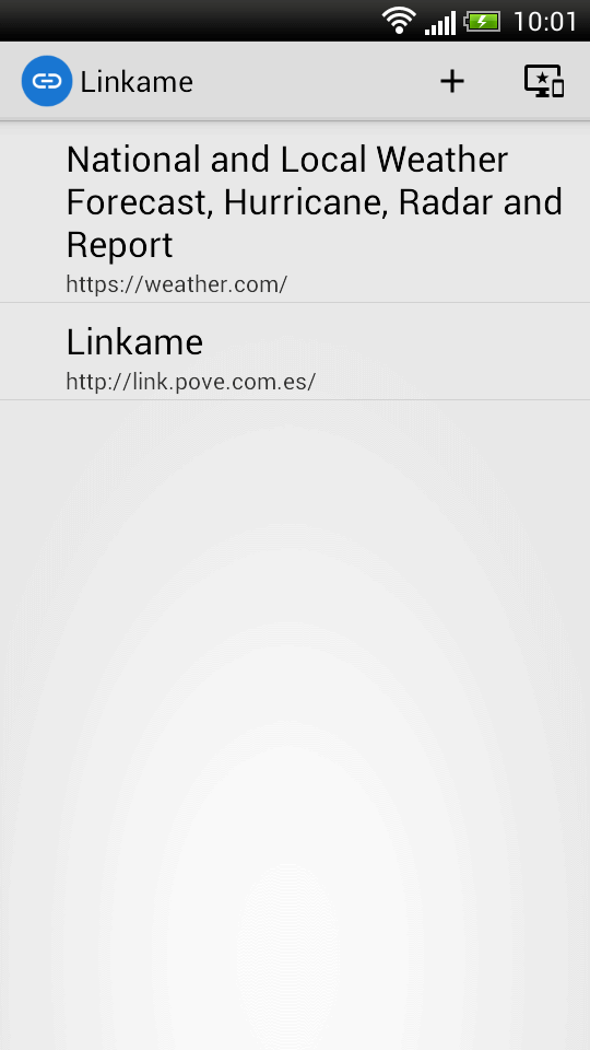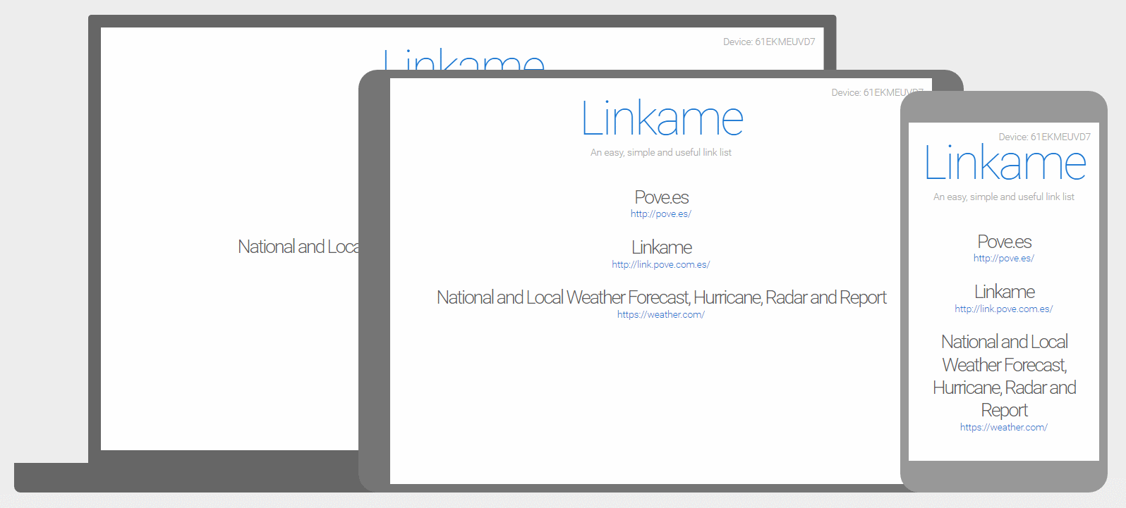 On the one hand we have the Android app and on the other a web to see the links. The first time you access the Linkame website, a unique identifier is generated for that computer, you can register that identifier in the app and now you are able to send links via the "Share" menu of Android.